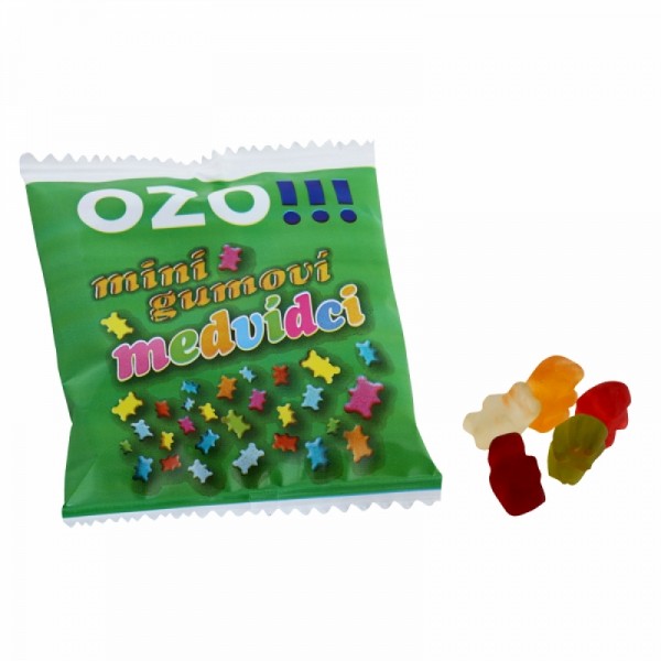 Mini žele bonboni 15 g, v vrečki po vašem designu. Minimalna količina: 5000 kos. Cena po povpraševanju.