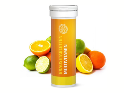 Šumeče tablete z okusom pomaranče učinkovito pokrivajo dnevno potrebo po 10 pomembnih vitaminih. Posebej razvita formula omogoča hitro absorpcijo vitaminov in ne vsebuje umetnih barvil, je nizkokalorična, veganska, brez glutena in laktoze.