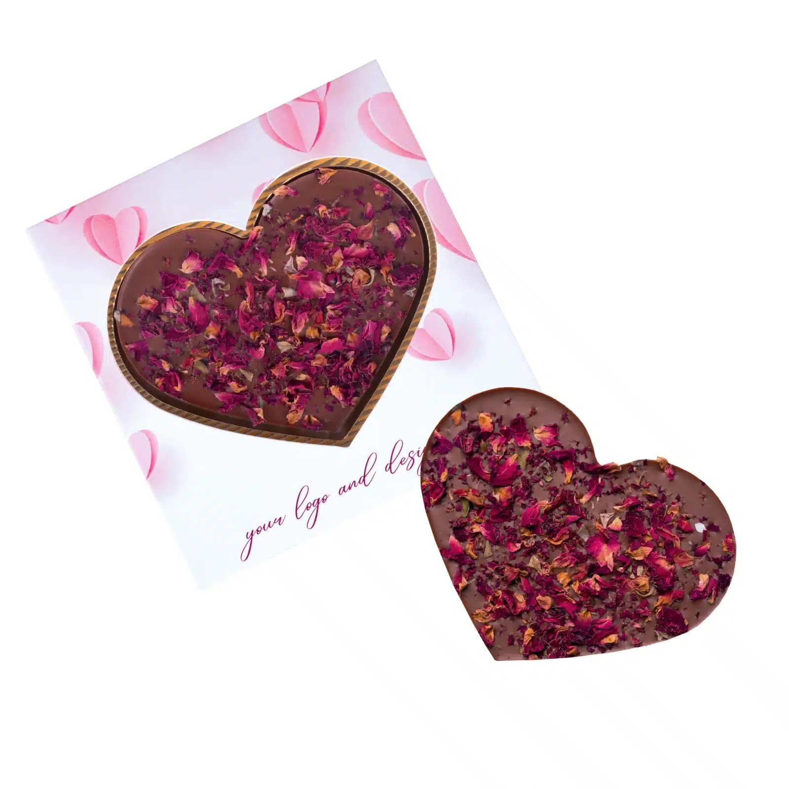 Čokolada z dodatkom cvetnih listov vrtnic (65 g) v personaliziranem ovoju je popolno darilo, saj združuje vrhunski okus čokolade z elegantnim dodatkom cvethnih listov vrtnice, kar jo naredi edinstveno in nepozabno.