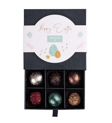 Če iščete edinstveno poslovno darilo za veliko noč, je ta darilna škatla za praline odlična izbira. Vsaka čokoladna kroglica, ovita v barvito folijo, pritegne pozornost in okrepi praznično vzdušje. V kompletu so tudi izvrstni tartufi Art Deco, ki izkušnji dodajo pridih razkošja.