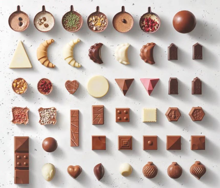 Škatla ponuja štiri izjemne okuse: mlečno čokolado, polnjeno s pistacijami, mandlji, lešniki in orehovo kremo. Elegantna embalaža, ki je na voljo v beli ali črni barvi, poudarja ekskluzivnost kompleta, zaradi česar je izstopajoče darilo.